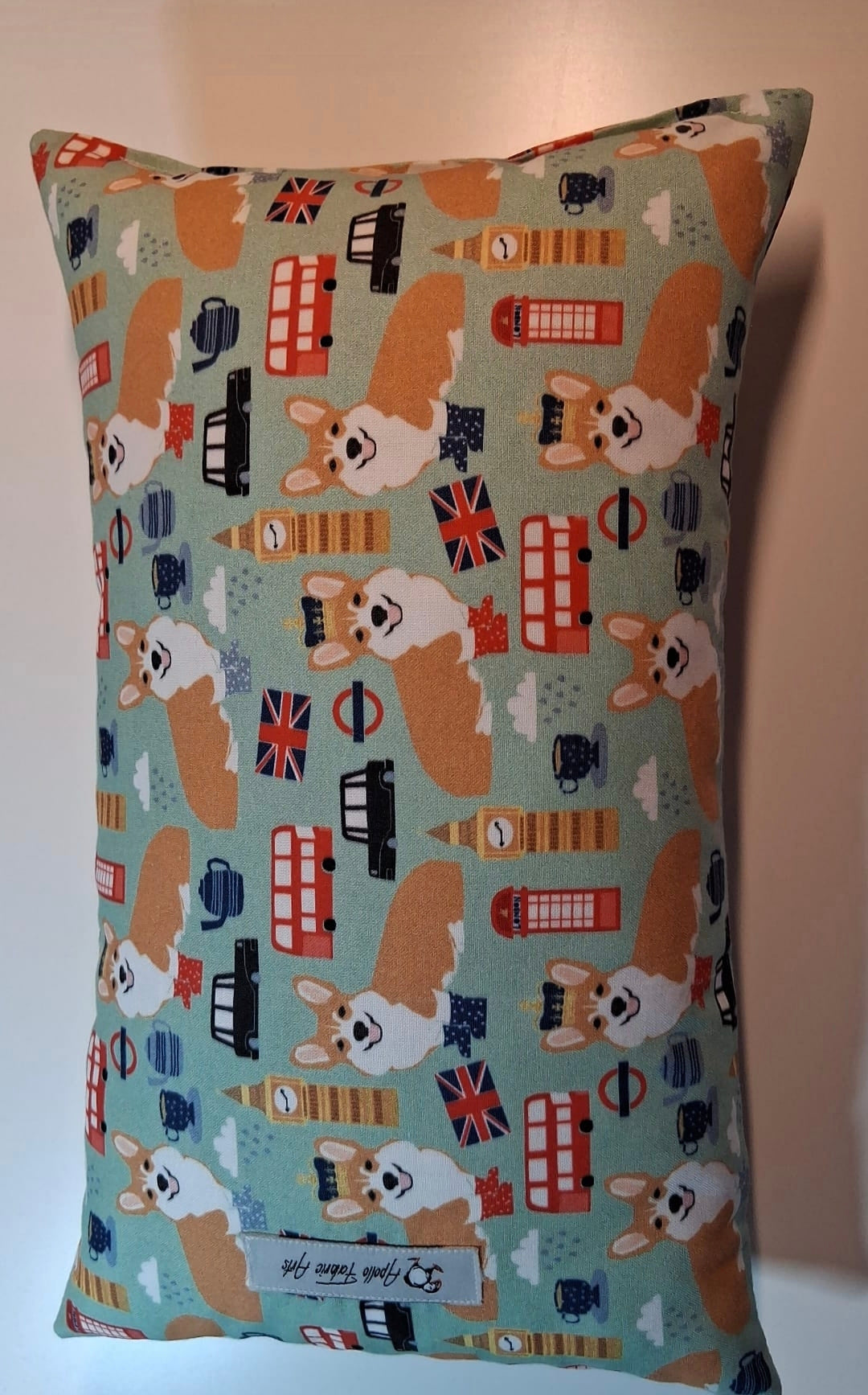 "Corgis & Co "Kissen/ Reisekissen/Nackenkissen , hellgrün (große Motive) , Handarbeit