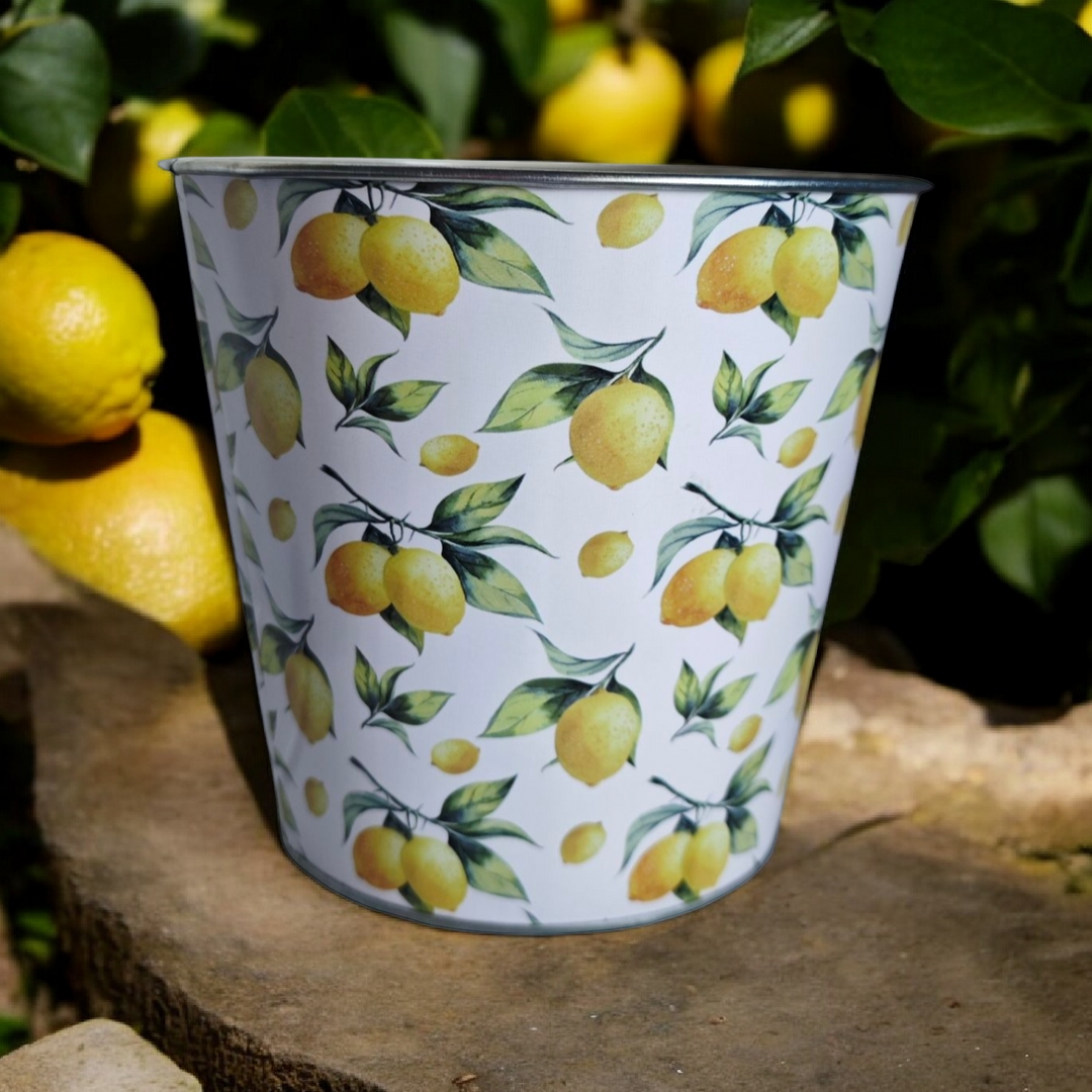 Blech-Pflanztöpfchen , mit wunderschönen Zitronen-Motiven