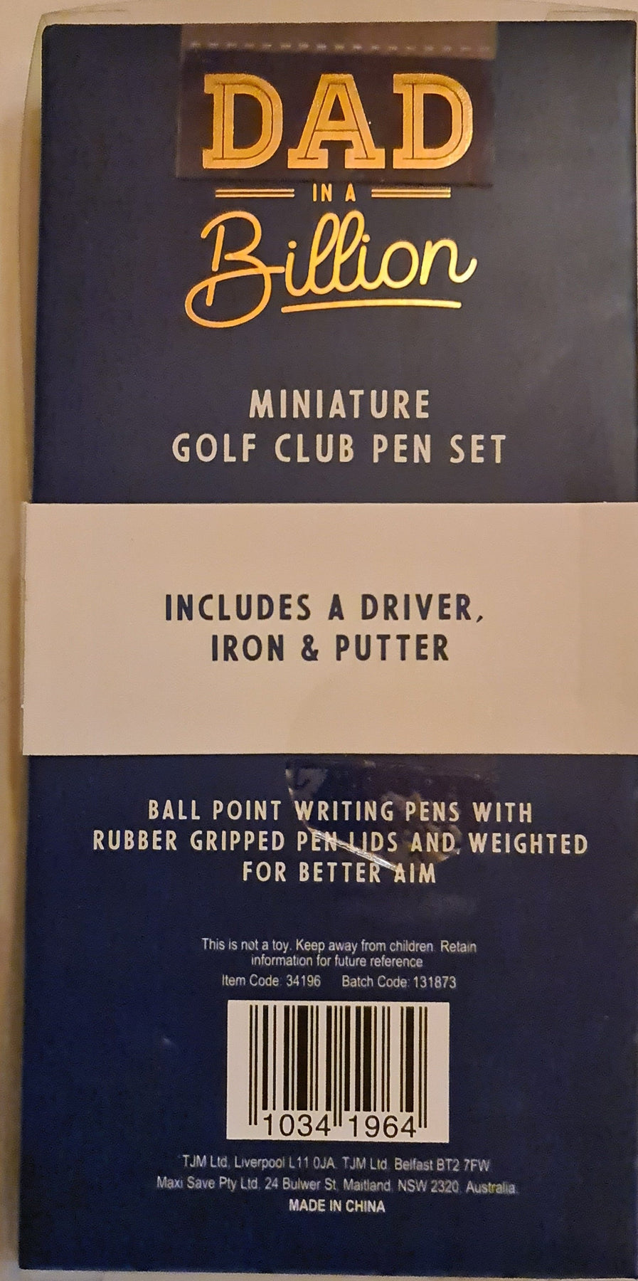 3 Kugelschreiber in Form von Driver, Iron & Putter