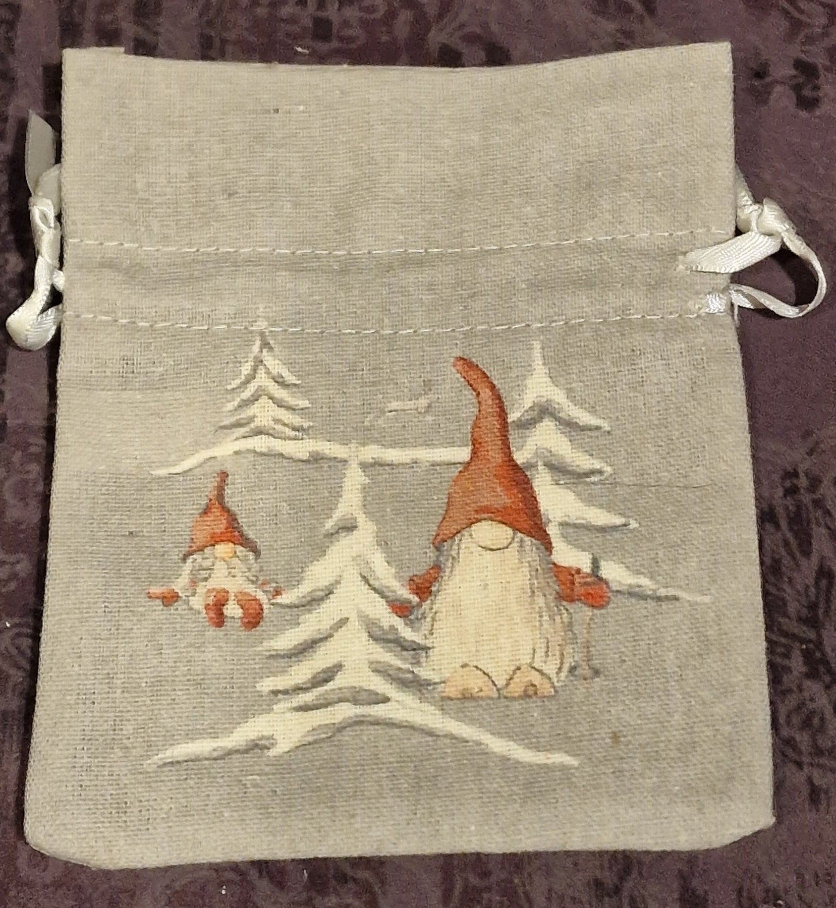Geschenkbeutel mit skandinavischen Weihnachtswichtel-Motiven, 10cm x 15 cm