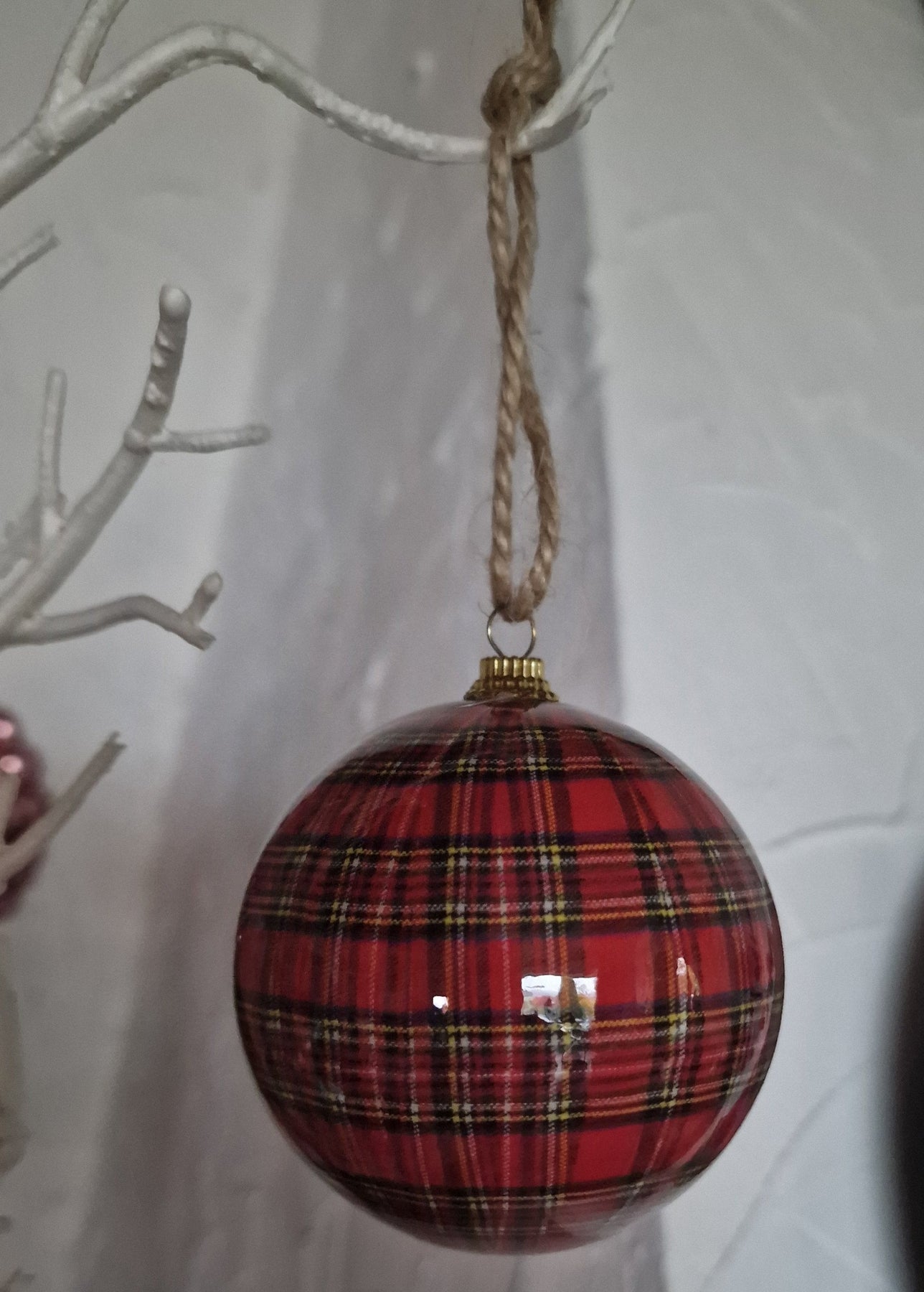 Weihnachtsbaumkugel Tartan-Style, Kunststoffgrün/rotGibt dem Weihnachtsbaum doch gleich so einen schottischen Touch.......