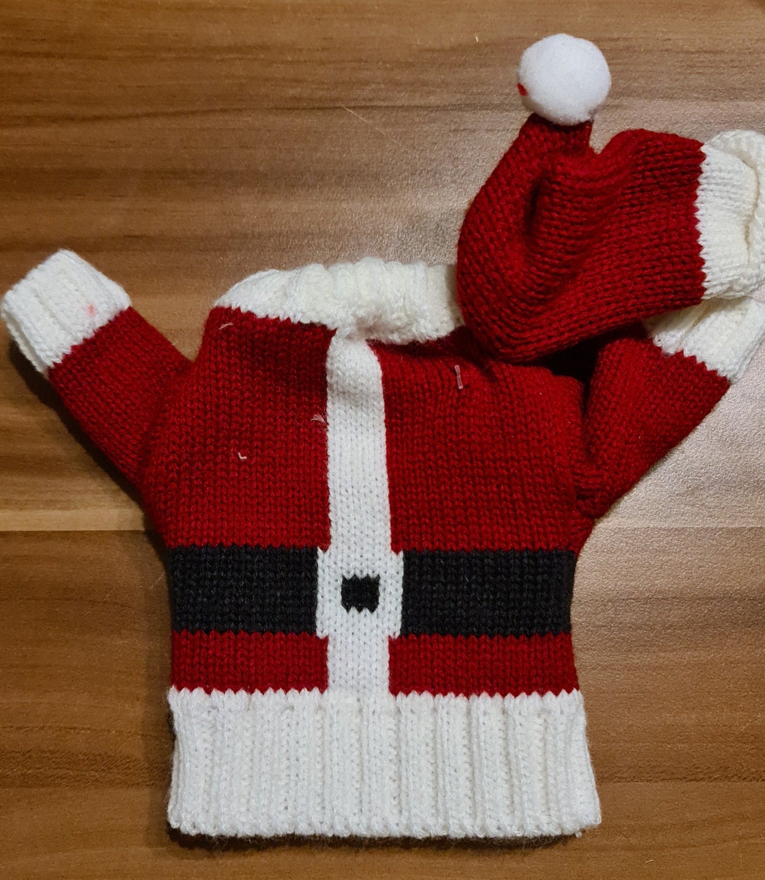 Die etwas andere Geschenkverpackung.Flasche Wein in den kuscheligen Pullover stecken und fertig ist eine kleine kreative Geschenkidee