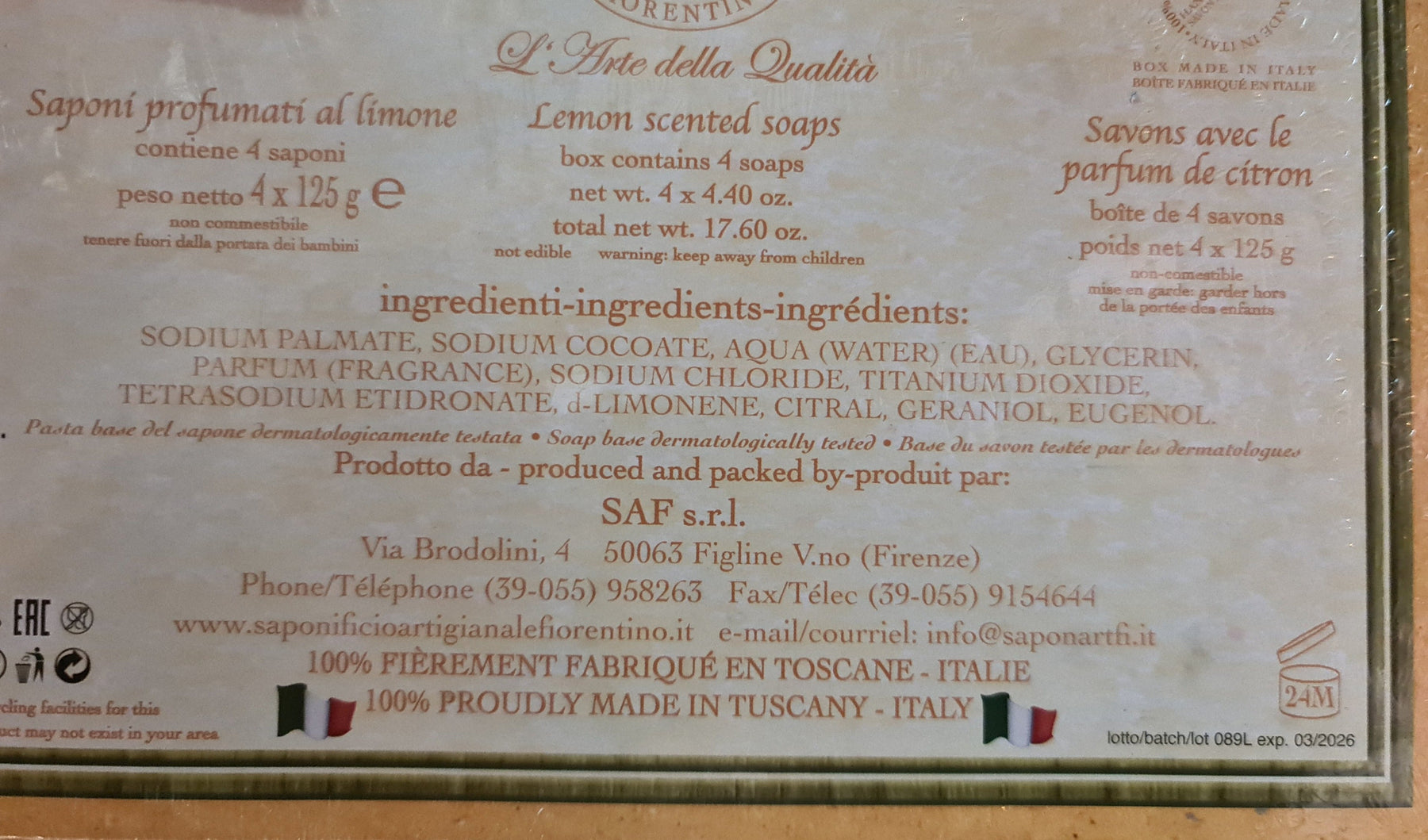 Zitronenseifen aus der Toskana ( 4x125 gr), in Handarbeit hergestellt,
