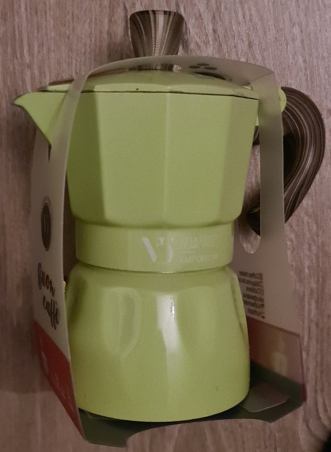 Espresso Bereiter, hellgrün mit Griffen in Holzoptik