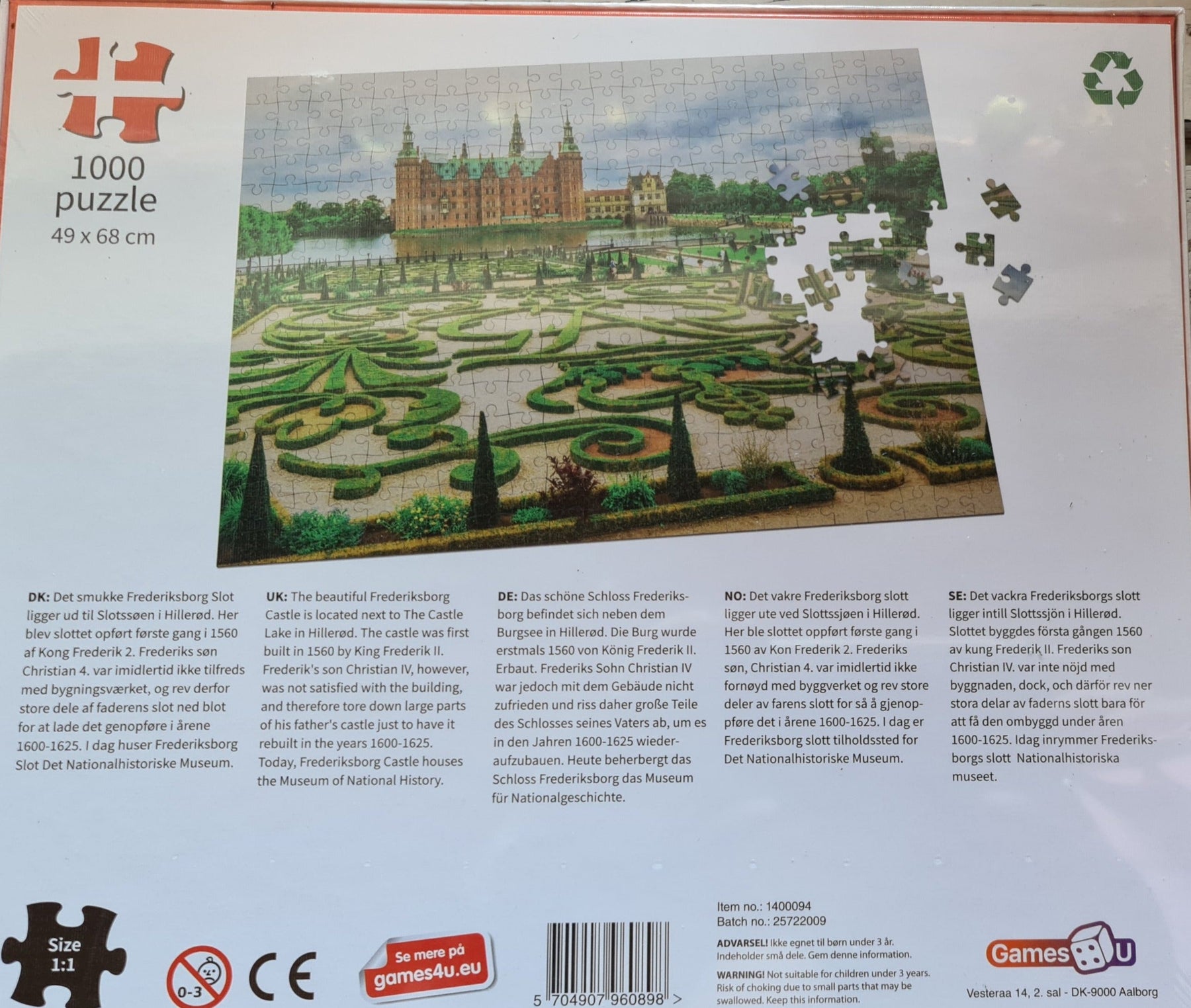 Puzzle. 1000-teilig, Schloß Frederiksborg, Dänemark ( ca 49 cm x 68 cm