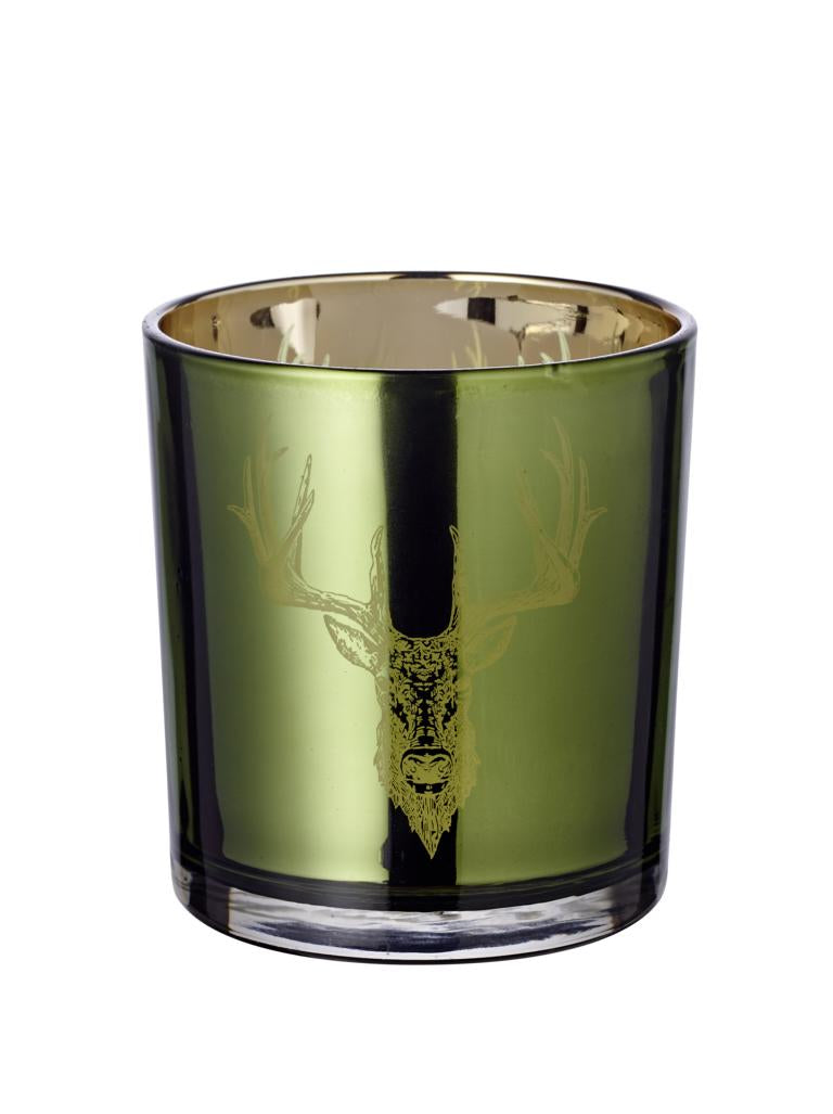 Windlicht /Teelichtglas /Kerzenglas , grün, Hirsch, Höhe 8 cm
