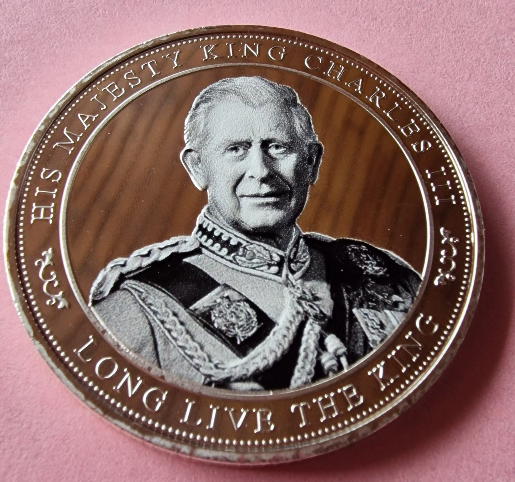 King Charles III. Coronation Gedenkmünze , Metall, silberfarbig.