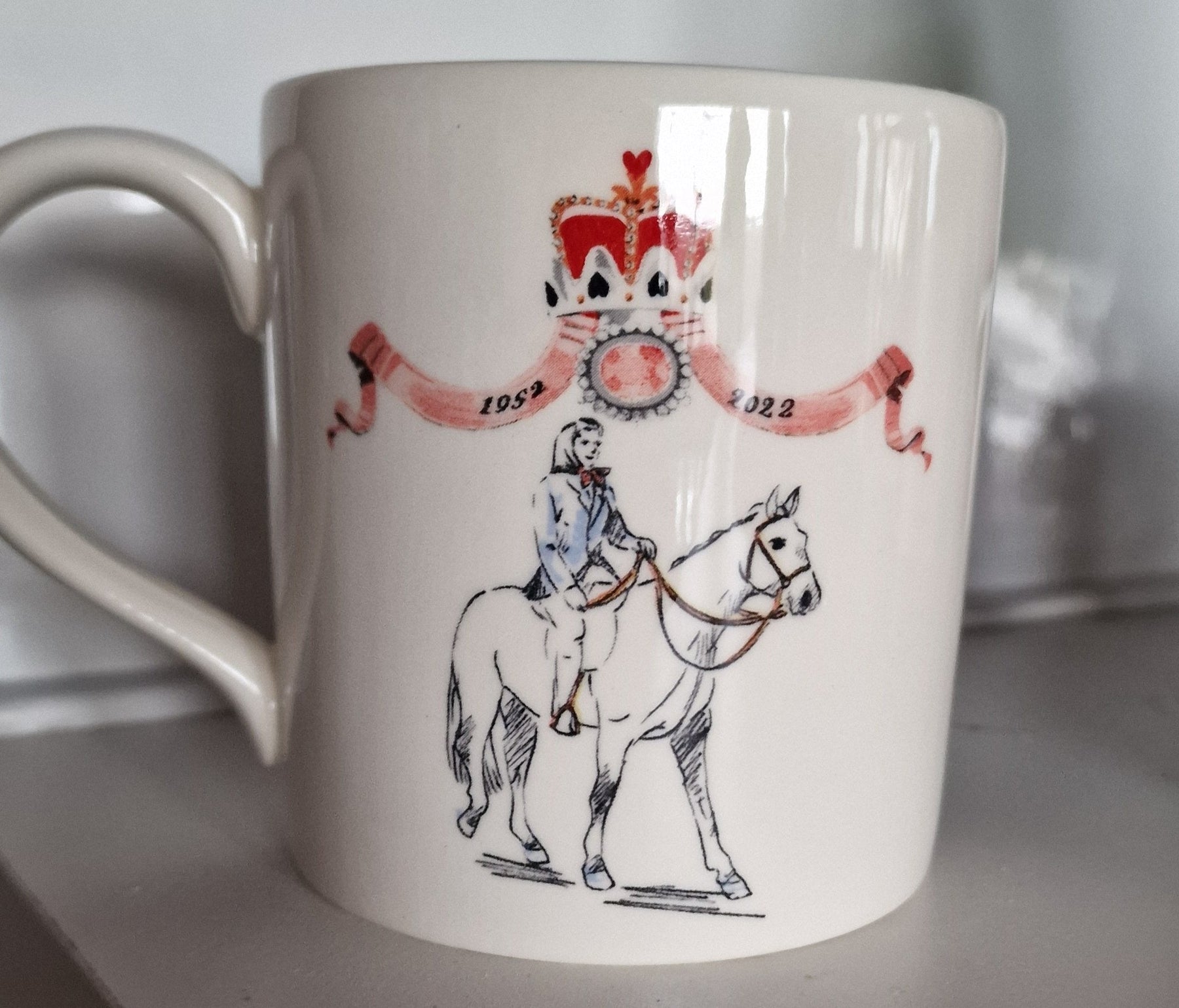 - Handgemalte Porträts: Die Tassen zeigen handgemalte Porträts von Königin Elizabeth II. und ihrem Corgi, sowie hoch zu Roß, die mit Union Jack-Girlanden und Juwelen verziert sind.